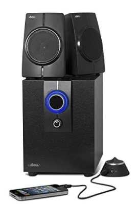Ensemble 2.1 avec télécommande filaire design ! Système 2.1 SoundPhonic 18W RMS : idéal pour les jeux-vidéo, les films et la musique.De multiples possibilités s’offrent à vous, branchez tout simplement SoundPhonic à votre ordinateur,portable, console de jeux, TV ou lecteur MP3/MP4.Télécommande filaire design avec réglage du volume, dotée d’une prise pour casque audio stéréo et d’une entrée ligne supplémentaire qui vous permet d’y connecter une deuxième source audio (smartphone, lecteur MP3 / MP4…).Des satellites design pour un son stéréo dynamique de haute-fidélité.Son subwoofer en bois doté de la technologie Velocity Bass vous donnera un son puissant et équilibré. Plus produit :