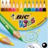 Étui de 12 crayons de couleurs Évolution triangulaire pointe moyenne. Facile de préhension par sa forme triangulaire et son corps gros module.Ultra résistant aux chocs, pas d »écharde en cas de bris, sa composition est en résine de synthèse. Mine sèche en pigment, couleurs vives, lumineuses et couvrante. Couleurs miscibles entre elles. Longueur 14 cm, diamètre 10 mm.